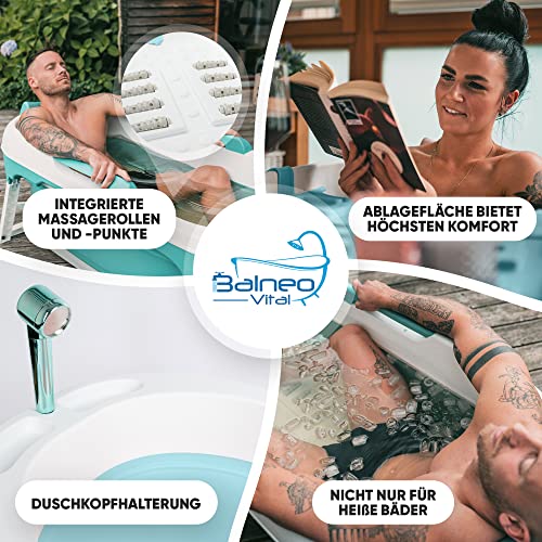 Balneo Vital® Faltbare Badewanne XL mit Badewannenablage & Massagerollen für Erwachsene & Kinder | mobile Badewanne freistehend für Badezimmer | Ihre tragbare klappbare Bathtub für Dusche & Outdoor