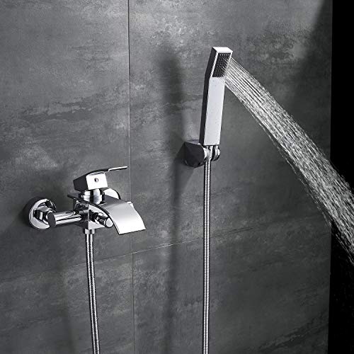 Specification: Auralum Badewannenarmatur mit Handbrause, Brauseschlauch und Brausehalter, Messing Einhebel-Wannenarmatur Duscharmatur Wasserfall Wannenbatterie Badarmatur Duschset Duschsysteme für Badewanne