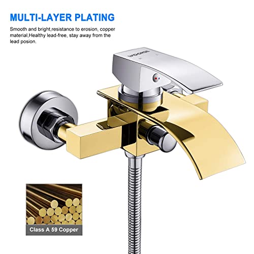 Wasserfall Badewannenarmatur mit 3 Funktionen Handbrause, WOOHSE Mischbatterie Badewanne Armaturen Wand, Einhand-Brausebatterie für Badezimmer Dusche