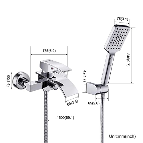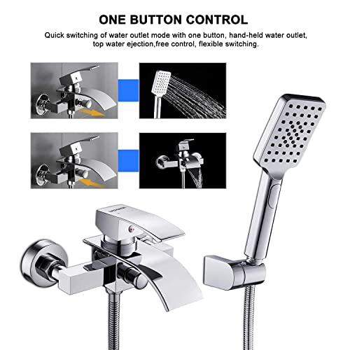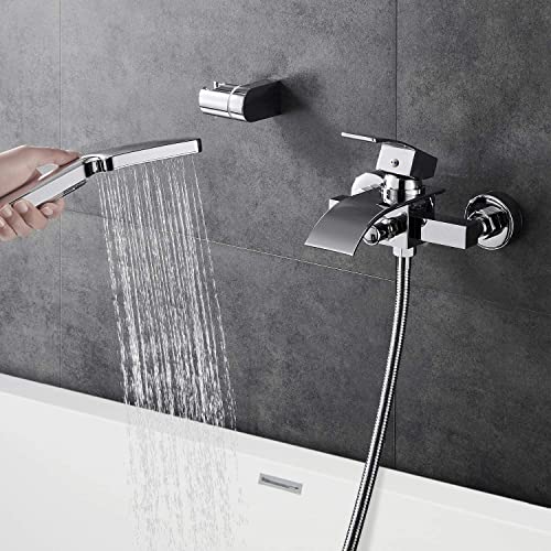 Specification: Wasserfall Badewannenarmatur mit 3 Funktionen Handbrause, WOOHSE Mischbatterie Badewanne Armaturen Wand, Einhand-Brausebatterie für Badezimmer Dusche