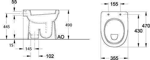 Specification: ‘aquaSu® Stand-WC-Set liDano +10 cm, Erhöhtes WC, Weiß, Inklusive WC-Sitz, Für Senioren und große Menschen, Flachspüler, Abgang innen senkrecht, Bodenstehend, Keramik, 02603 1
