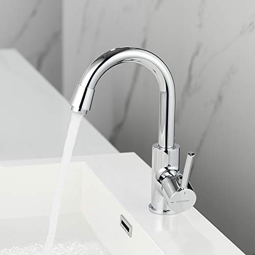 GRIFEMA G1002,Wasserhahn Bad/Küche -Waschtischarmatur 360° Drehbar, Mischbatterie Einfache Montage,für Badezimmer, Waschbecken, Messing, Silber [Exklusiv bei Amazon]