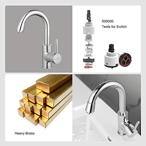 ✅【MATERIAL】 Messinghahnkörper + Edelstahlarmaturen. Einhandmischer waschbecken ist robust und langlebig, lange Lebensdauer.