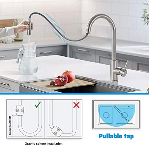 🛩️ HOCHWERTIGER WASSERHAHN – Dieser Küchenarmatur besteht aus Edelstahl 304. Gesund und bleifrei, um die Sicherheit des Trinkwassers zu gewährleisten. Dank der gebürsteten Oberfläche ist der Wasserhahn kratzfest und gegen Fingerabdrücke geschützt. Der Wasserhahn ist sehr leicht mit einem Tuch zu reinigen.