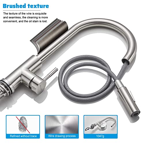 Specification: BONADE Küchenarmatur Ausziehbare 360° Schwenkbar Spültischarmatur mit Brause Edelstahl Wasserhahn Küche mit 2 Strahlarten Einhandmischer Spültischbatterie Gebürstet Mischbatterie für Spülbecken