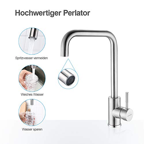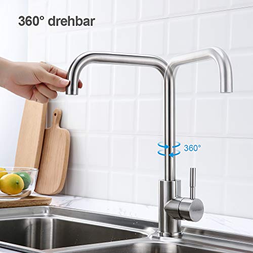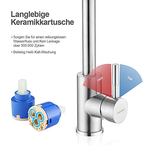 Specification: EXECART Wasserhahn Küche 360 Grad Drehbar Einhand Küchenarmatur spülarmatur Edelstahl Gebürstet Armatur mischbatterie küche