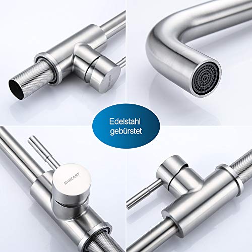 【Einfache zu Wartung】EXECART Armatur Küche ist aus hochwertigem edelstahl mit gebürsteter oberfläche. Einfach zu säubern. Für die tägliche Wartung reicht ein Tuchwischer.
