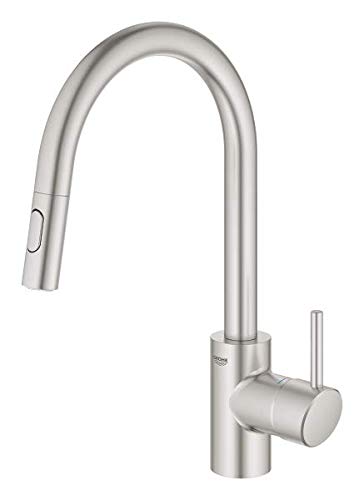 GROHE Concetto – Einhand Spültischarmatur (mit herausziehbarer Dual Spülbrause, C-Auslauf, Schwenkbereich 360°), supersteel, 31483DC2