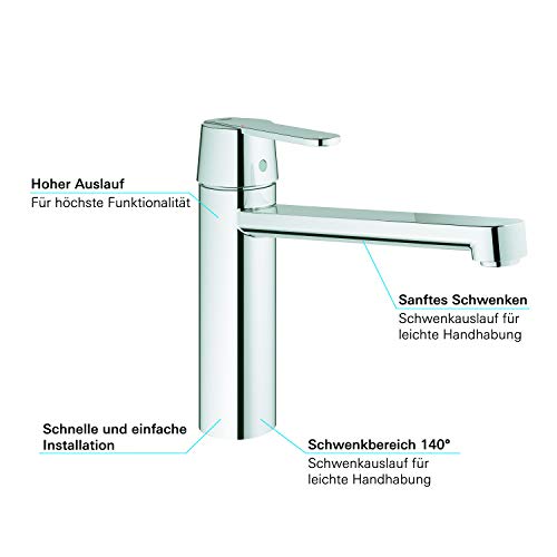 Specification: GROHE Get – Einhand- Spültischarmatur (mittelhoher Auslauf, Schwenkbereich 140°, Einlochmontage), chrom, 30196000