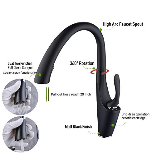 ✔ Leicht zu reinigen: Mattschwarze Oberfläche und Oberflächenübergangs-Design. Verhindert, dass Schmutz/Wasserflecken an der Wasserhahnoberfläche haften, Reinigung des Wasserhahns mit einem Tuch ist genug für den täglichen Gebrauch.