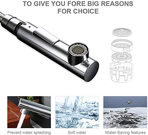 【Kein Spritzen und Lärm】Diese Küchenarmatur ist mit einem ABS Perlator ausgestattet. Er sorgt für einen weichen und sanften Wasserfluss und vermeidet Spritzwasser und Lärm, wobei Sie bis zu 30% Wasser sparen.