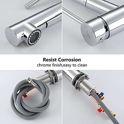 【Wasserhahn Küche Ausziehbare Brause】Sie können das Spritzgerät bis zu 30-40 cm herausziehen. Es ist einfach, jede Ecke des Waschbeckens zu reinigen. die Spüle reinigen oder Töpfe befüllen ganz mühelos und spielend leicht.