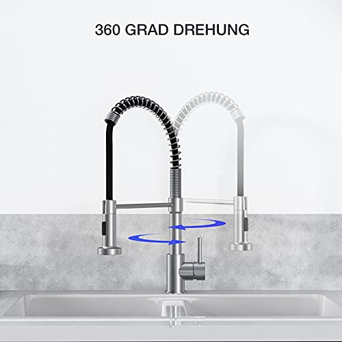 ❤Einzigartiges Aussehen & Stabiler mit Halterung❤ Oberfläche Nickel gebürstet, schmutzabweisend und leicht zu reinigen, einzigartige Spiralfederform, besser geeignet für Ihre moderne Küche. Der spültischarmatur mit Halterung kann verwendet werden, um den Sprinkler zu platzieren, der im Gebrauch stabiler ist.