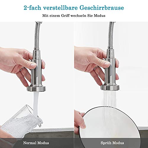 Specification: Küchenarmatur Wasserhahn Küche mit Brause, 360° schwenkbar Hochdruck Spültischarmatur, Mischbatterie aus Edelstahl, Einhebelmischer Spültischbatterie (Silber)
