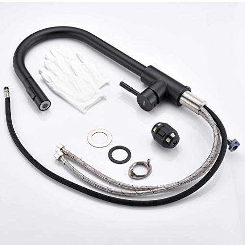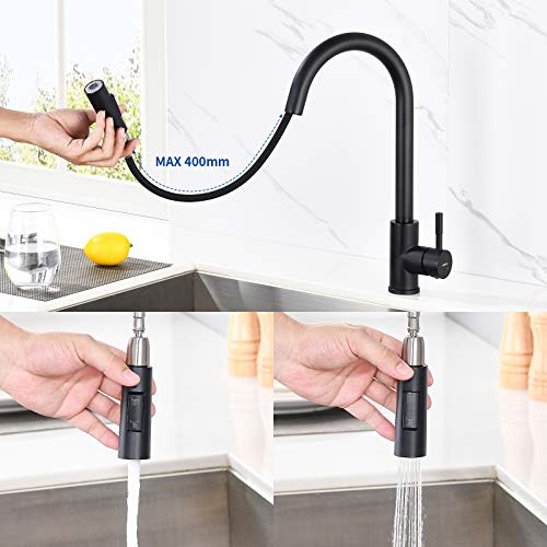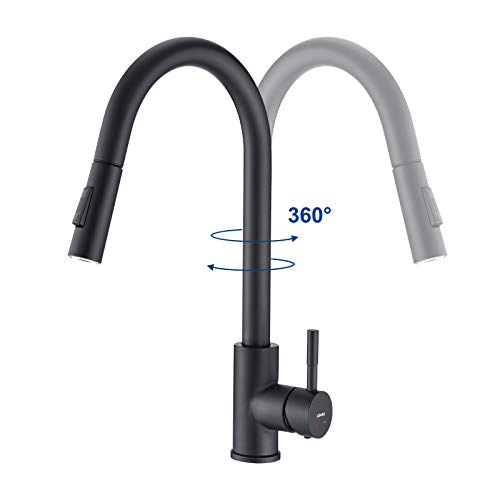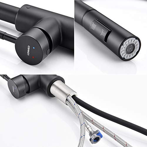 Specification: Wasserhahn Küche Schwarz, Lonheo 360° Drehbar Küchenarmatur Ausziehbar, Hochdruck Mischbatterie Küche mit Brause 2 Wasserstrahlarten, Edelstahl Spültischarmatur Küche für Küchenspüle
