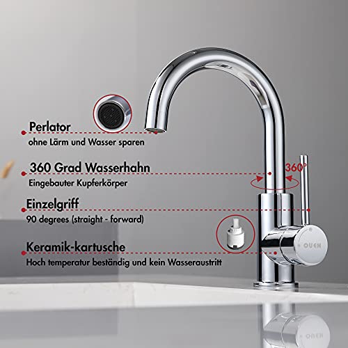 【EWIGER GLANZ】:ouen waschbecken wasserhahn exquisiten Verchromung haben Sie auch nach jahrelangem Gebrauch eine glänzende und neu aussehende Waschbecken Armatur. (Reinigungshinweise spültischarmatur küche beachten)
