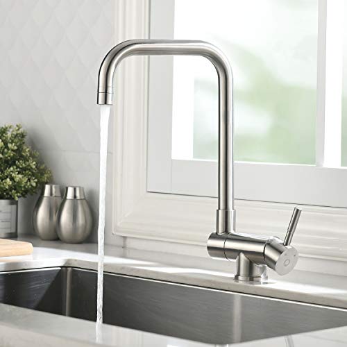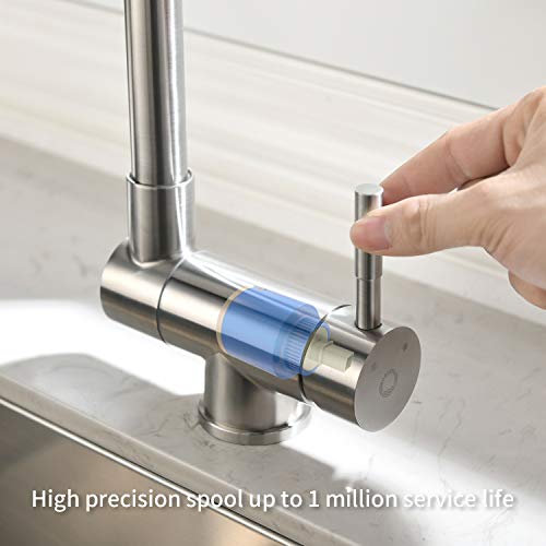 EDELSTAHLMATERIAL + EINHAND-STEUERUNG VON HEISSEM UND KALTEM WASSER: Dieser Mischbatterie küche besteht aus hochwertigem Edelstahl 304, mit einem Drahtziehverfahren auf der Oberfläche, und die Textur ist klar und nicht leicht zu zerkratzen. Das Einhand-Design ermöglicht es Ihnen, heißes und kaltes Wasser mit einer Hand zu steuern, was sehr praktisch ist.