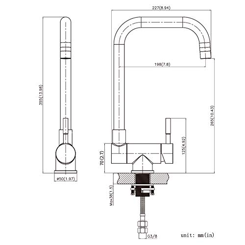 EINFACHE INSTALLATION + 2 JAHRE GARANTIE: Einlochmontage, Installationsloch: ø35-38mm; anwendbare Installationsplattendicke: 1-38mm; 2 x 50cm Schlauch und allgemeiner G3/8 Anschluss; jeder unserer armatur küche hat eine Montageanleitung, nur In a In wenigen Schritten können Sie den Wasserhahn selbst installieren. Zwei Jahre Garantie: Während dieser Zeit können Sie uns bei Qualitätsproblemen kontaktieren. Wenn Amazon Ihnen nicht helfen kann, das Problem zu lösen, können wir Ihnen helfen.