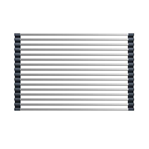 𝙆𝙡𝙖𝙥𝙥𝙢𝙖𝙩𝙩𝙚 𝙛𝙪̈𝙧 𝙆𝙪̈𝙘𝙝𝙚𝙣𝙨𝙥𝙪̈𝙡𝙚: Aus SUS304 Edelstahl-Stäben, Stabil, flexibel und platzsparend. Sie eignet sich als Abtropfgitter oder zusätzliche Ablagefläche über dem Spülbecken. Für rillenfreie Abtropfflächen ist die Klappmatte ein nützliches Extra, da Gefäße auf ihr besser abtropfen können.