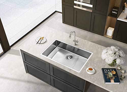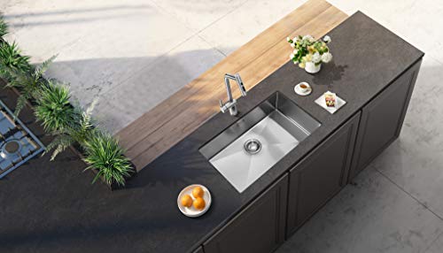 Specification: XXL Küchenspüle Mizzo Linea 70-40 | Küche Edelstahlspüle ab 80er Schrank | Spülbecken Groß mit Radius von 10 mm | Flächenbündig, Unterbau oder Einbau | Waschbecken Küchen | Satin Edelstahl Spüle