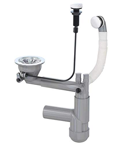 LINDBERGH Granitspüle mit kompletten Siphon und Drehexcenter, zum automatischen Öffnen und Schließen des Ablaufes
