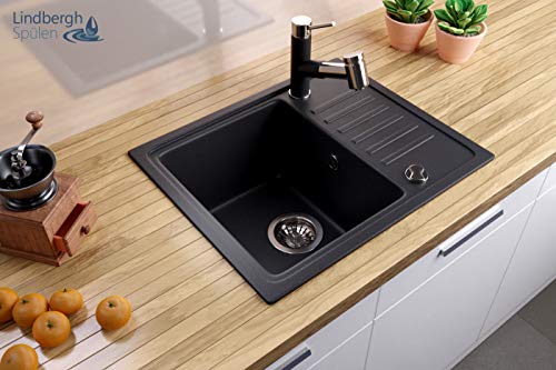 Specification: LINDBERGH® Granitspüle “SIM11” Schwarz Einbauspüle Küchenspüle Spüle Spülbecken + DREHEXCENTER – Verbundstoffe MADE IN GERMANY