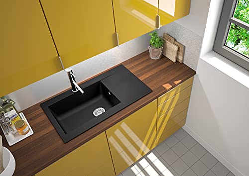 Specification: Respekta Denver Mineralite-Verbundstoffspüle in Schwarz / 1 Becken Einbauspüle in 86 x 50 cm/Spülbecken geeignet für Unterschränke ab 60 cm Breite