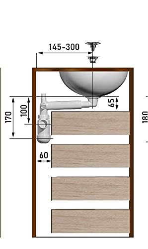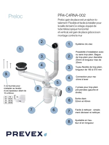 Specification: PREVEX Preloc mit mattschwarzem ablaufgarnitur/überlauf Platzsparender Universal-Siphon für Badezimmer-Waschtisch | aus recyceltem Kunststoff