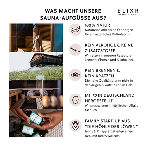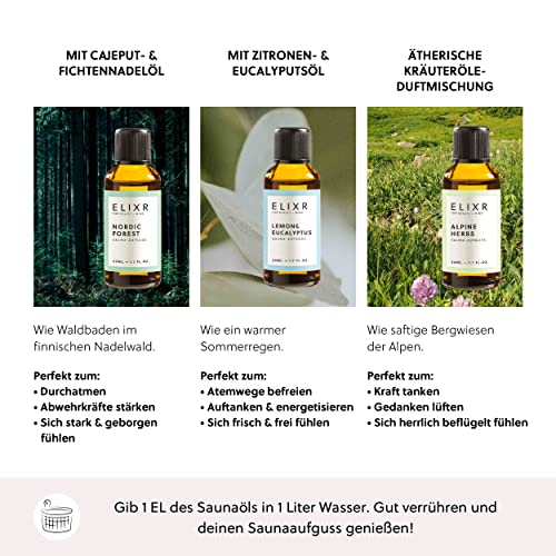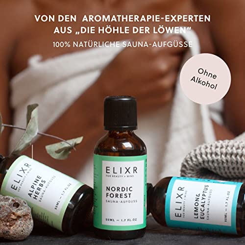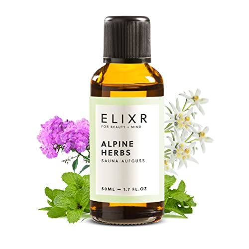 ELIXR – Saunaaufguss Alpine Herbs – Sauna Aufgussmittel für Sauna Aufgüsse – 100% naturreines ätherisches Saunaöl mit Alpenkräutern – Saunaduft als perfektes Sauna Geschenk (50 ml)