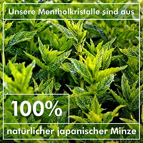✅ NATÜRLICHE MINZE – Unser Menthol wird zu 100% aus natürlicher japanischer Pfefferminze gewonnen. Der Herkunft und schonenden Verarbeitung verdanken die Mentholkristalle ihren intensiv frischen Minzduft.