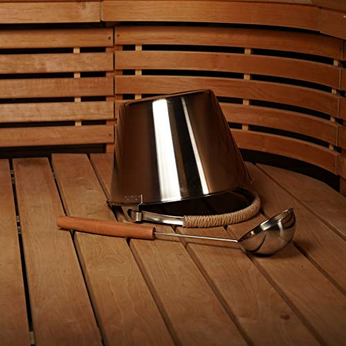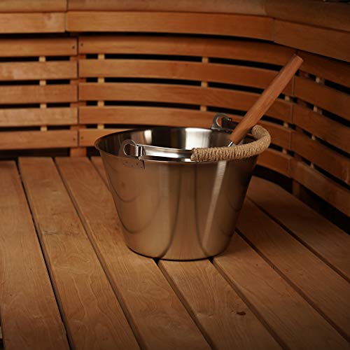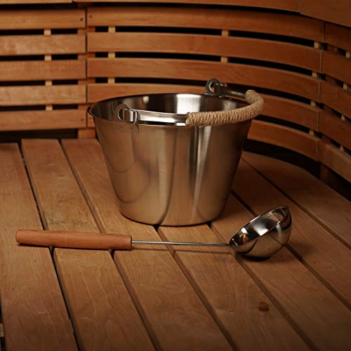 Specification: LUMO 8L Saunaeimer mit Kelle – Sauna Zubehör Set – geflochtener Griff, Edelstahl
