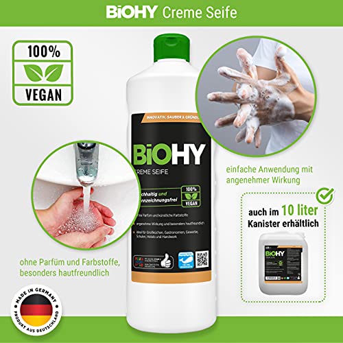 BiOHY Creme Seife (10 Liter Kanister) | Hautschonende, rückfettende & geruchsneutrale Handseife | flüssiger Nachfüllpack mit pflanzlichen Inhaltsstoffen | auch für das Gesicht geeignet