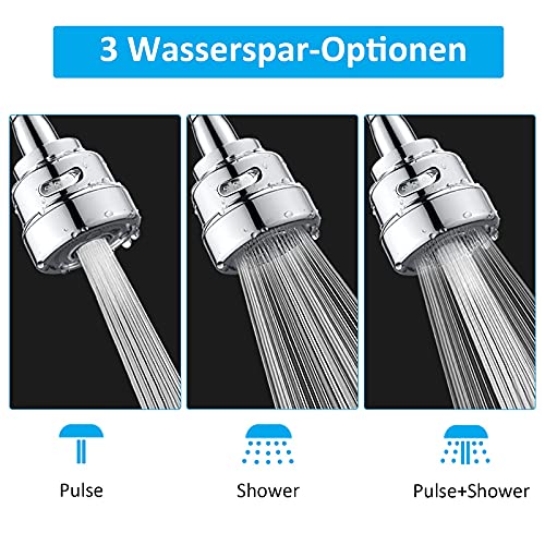 【3 Wasserspar-Optionen】 Wasserhahn-Ersatzkopf mit einer Taste von drei einstellbaren Wassersprühmodi (Puls, Dusche, Impuls + Dusche), erfüllt verschiedene Bedürfnisse des Waschens. Wasser fühlt sich weich und dicht aus dem gleichmäßigen Ausgangsauslauf, kein Spritzwasser und starke Sprühkraft zu reinigen, es wird Energiekosten und Wasserverbrauch um mehr als 50% reduzieren, sparen Sie Geld.